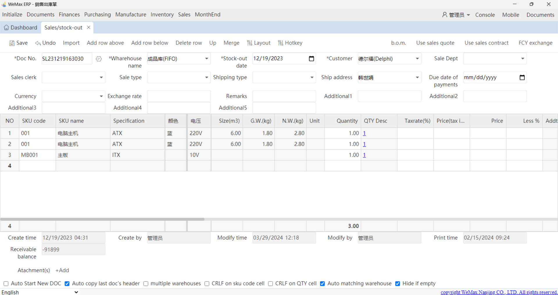 - Inventory management: Stock-in -> Reservation -> Stock-out -> Stock-transfer -> Stock taking -> View account book (Batchtrace, multiple units of measure, multiple costing solutions)