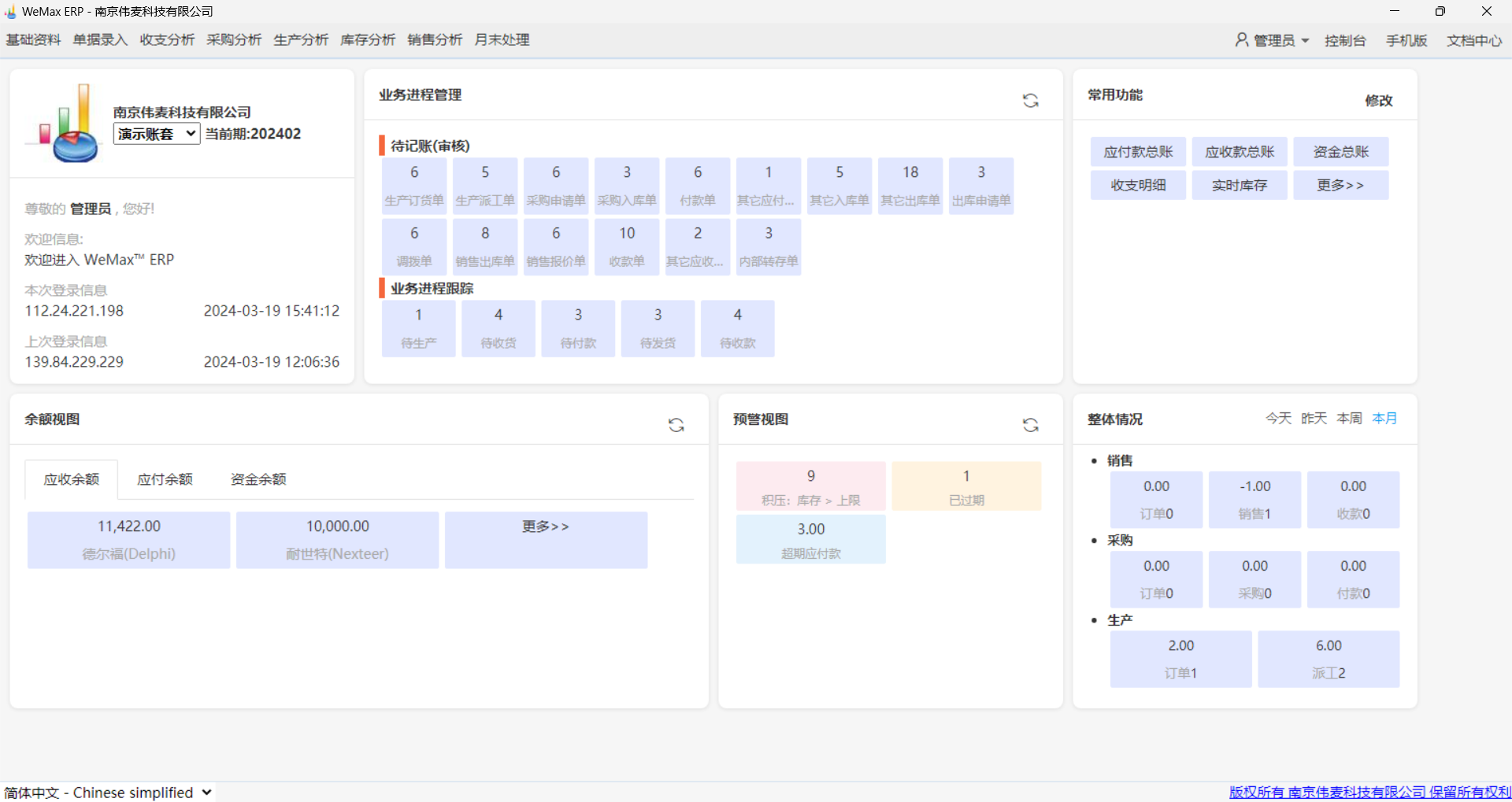 WeMax™ ERP 云平台,功能强大、应有尽有!